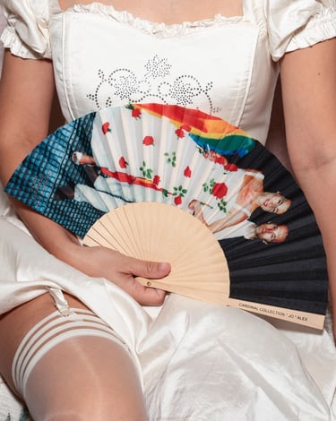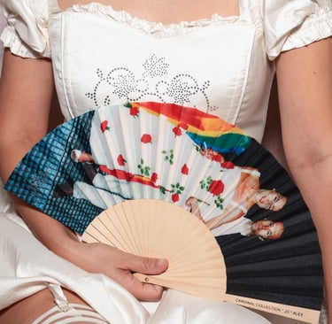 Jo Bernardo and Alex, both Portuguese activists protecting trans rights for years, opened their private archives to a young trans activist based in Lisbon, Mo, (Instagram: here) and to the director of Cardinal Collection, Tristan van Spece, who happily commissioned this fan to memorialize the LGBTQIA+ history of Portugal. The fan comes with a special mini zine.