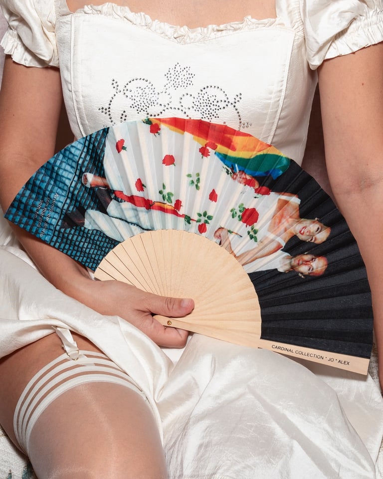 Jo Bernardo e Alex, ambos ativistas portugueses que há anos defendem os direitos de transgéneros, abriram os seus arquivos privados a um jovem ativista transgénero sediado em Lisboa, Mo (Instagram: aqui), e ao diretor da Cardinal Collection, Tristan van Spece, que alegremente encomendou este leque para memorializar a história LGBTQIA+ de Portugal. O leque vem acompanhado de uma mini zine especial.